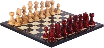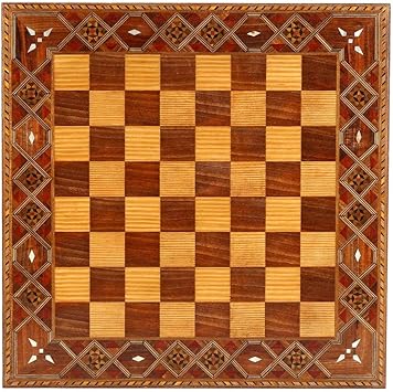 Ahşap Satranç Takımı/Seti; Orta, El Yapımı, Şimşir,Ceviz Desenli, Satranç Tahtası