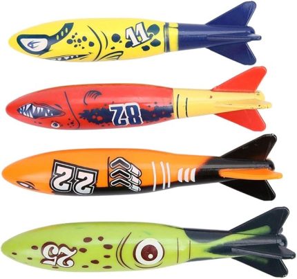 4 Adet Havuz Oyuncakları Havuz Dalış Oyuncakları Torpido Fırlatma Sualtı Torpido Roket Oyuncak Seti Köpekbalığı Sualtı Dalış Oyuncakları Yüzme Eğlencesini Geliştirmek için Mükemmel Havuz Oyuncakları H