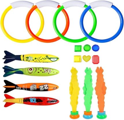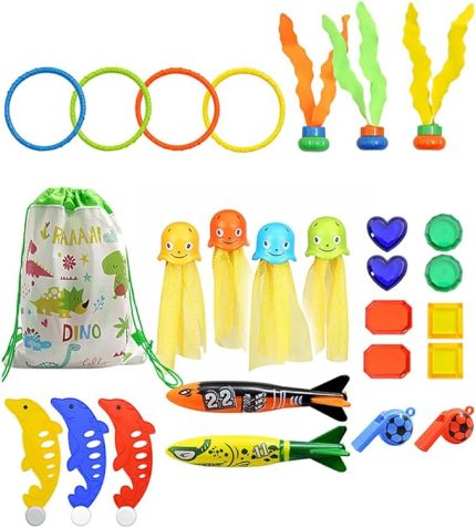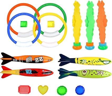 dalış oyuncakları, su altı oyuncakları, çocuk yüzme oyuncakları setleri, dalış çevreleri, dalış algleri, değerli taşlar, torpidolar (17 adet)