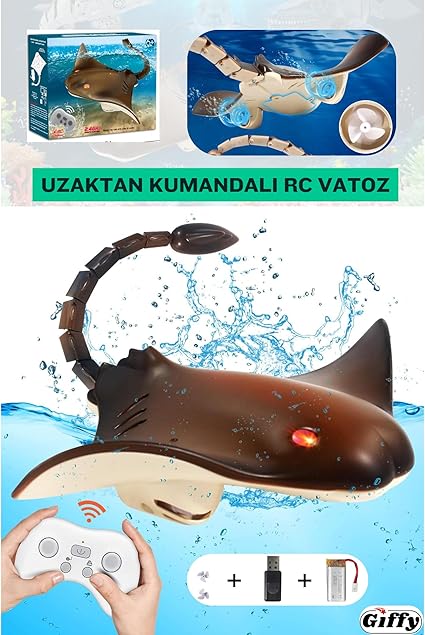 Kumandalı Vatoz Balığı Su Geçirmez Şarjlı Işıklı Hareketli Kuyruk Full Fonksiyon Hareketli, Havuz Oyuncakları, 2.4G Yüksek Simülasyonlu Vatoz Sualtı Hayvan Su