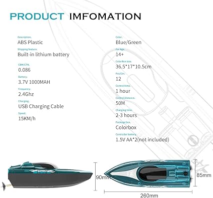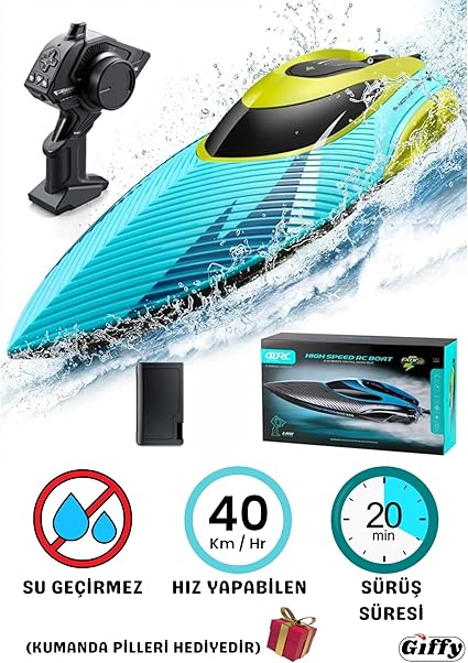 Kumandalı Tekne RC, Çift Motor 2.4G, 20 Km Hız Yapabilen, Full Fonksiyon, Dayanıklı Şaft