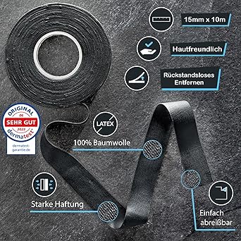 Fellows® Dermatest tırmanma bandı, 1,5 cm genişliğinde, PDF bant kılavuzlu, ideal parmak bandı ve spor bandı, tırmanma, kaya tırmanışı, güç sporları, hentbol, dövüş sporları için (3 rulo