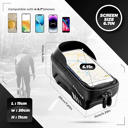 Bisiklet kadro çantası, su geçirmez, cep telefonu tutucu, dokunmatik ekranlı cep telefonu çantası, 6,7 inçe kadar akıllı telefonlar için, MTB, yarış bisikleti, Ebikes için