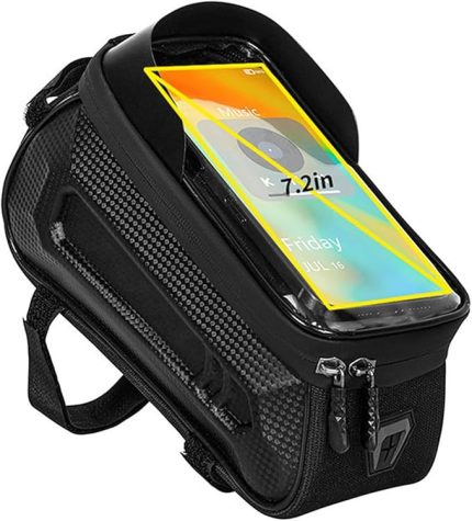 Bisiklet çantası, kadro çantası, 1,5 l, su geçirmez, bisiklet ön çantası, üst boru çantası, gidon çantası, bisiklet aksesuarı, siyah 1,5 l