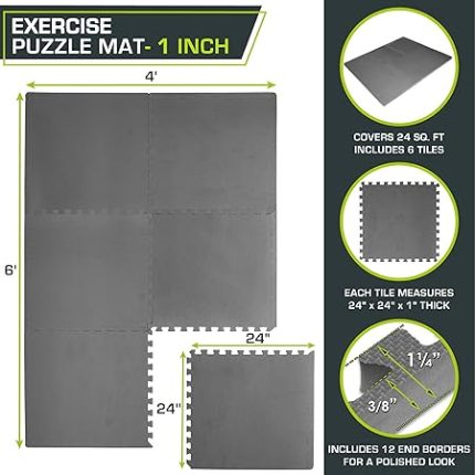Extra Thick Puzzle Exercise Mat 1”, EVA Foam Interlocking Tiles for Protective, Cushioned Workout Flooring for Home and Gym Equipment