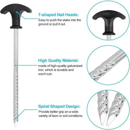 10 adet çelik çadır kazığı, 21 cm spiral çadır kazığı, T kazık, kamp, vidalı kazık, zemin kazığı, çadır, dişli, bahçe, kamp, seyahat, dış mekan için