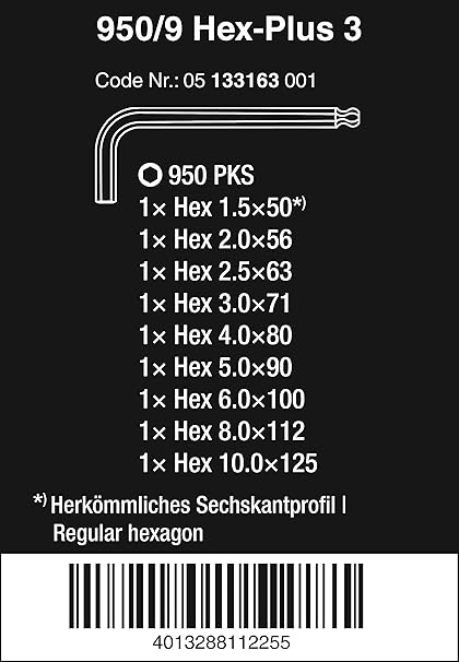 3950 PKL/9 L Anahtar Seti, Metrik, Paslanmaz Çelik, 9 Parça, Siyah/Gümüş, tek boyut, 05022720001