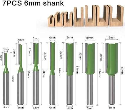6mm Shank Düz Yönlendirici Bit Seti, 7 adet Düz Freze Kesici, Profesyonel Tek/Çift Flüt Düz Yönlendirici Bit Ağaç İşleme için