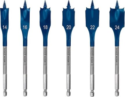 6 x Expert Self Cut Speed yassı freze matkap seti (yumuşak ahşap, sunta, çap 14 – 24 mm, profesyonel aksesuar, matkap/tornavida)