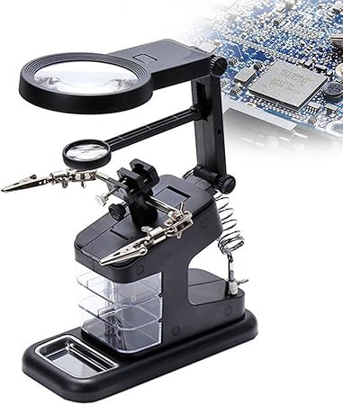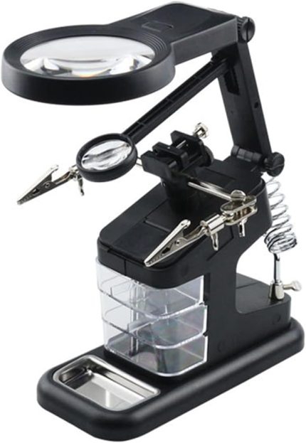 Çok Fonksiyonlu Masaüstü Büyüteç 3X 4.5X 25X Büyütme Ayarlanabilir Yön 3 Küçük Çekmeceli Timsah Klipsleri Sabit Elektrik Devre Kartı Onarım Çip Algılama Siyah