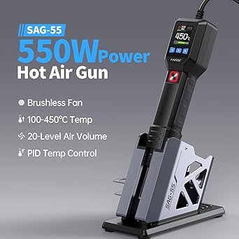 Hot Air Gun 550W with Stand BGA Rework LCD Digital Hair Dryer Soldering Heat Gun for Welding Repair Tools (SAG-55 Standard)