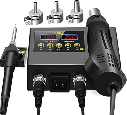 8898 2’si 1 Arada Lehimleme İstasyonu LCD Dijital Ekran Sıcak Hava Tabancası Kaynak Yeniden İşleme Sıcaklığı ve Hava Hacmi Cep Telefonu için Ayarlanabilir Havya Kiti BGA SMD PCB IC Onarım Havy