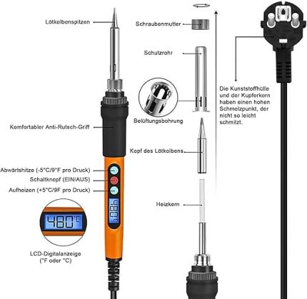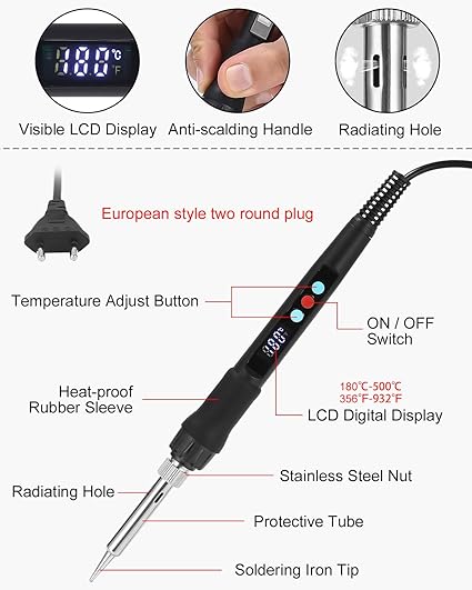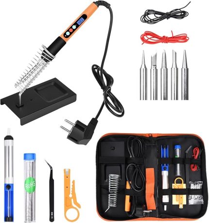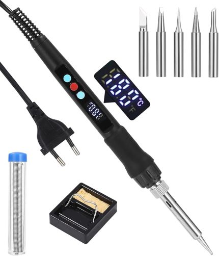 Havya seti, 100 W LED havya, ayarlanabilir ve kilitlenen sıcaklıklar 180℃-500°C, ON/OFF, havya standı, 10 g lehim teli, 5 lehim ucu, elektrikli işler ve ev kullanımı için lehim seti