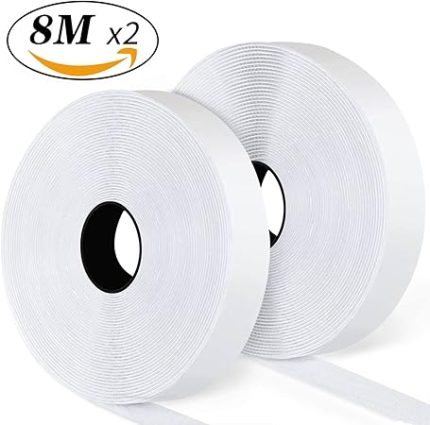 Cırt cırtlı bant, kendinden yapışkanlı, 8 metre, ekstra güçlü, çift taraflı yapışkan bant, cırt cırtlı, 20 mm genişliğinde, kendinden yapışkanlı bant (20 mm x 8 m, Beyaz)