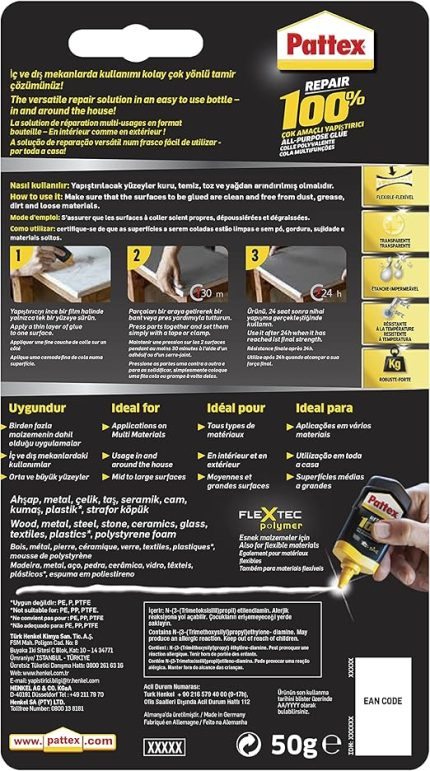 100 % Yapıştırıcı, Farklı Malzemelere Uygun Güçlü Yapıştırıcı, İç ve Dış Onarımlar için Çok Amaçlı Yapıştırıcı, Su ve Solvent İçermeyen Hızlı Yapıştırıcı, 1x50g