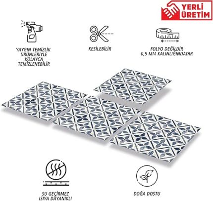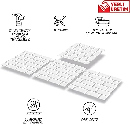 Kendinden Yapışkanlı Metro Karo Desenli PVC Karo, Yapışkanlı Fayans Kaplama, Fayans Çıkartması, Zemin Duvar Karosu 30×30 cm (4 Adet / 0,36 m²)