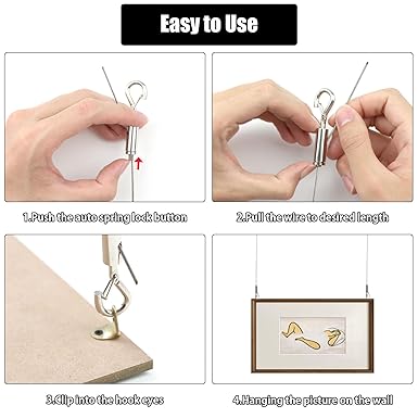 4 adet 2 m ayarlanabilir paslanmaz çelik tel halat, halkalı ve kelepçeli, 1,5 mm paslanmaz çelik halat tel halat, resim asmak için tel halat sabitleme ev, bahçe için (ağırlık kapasitesi 30 kg)
