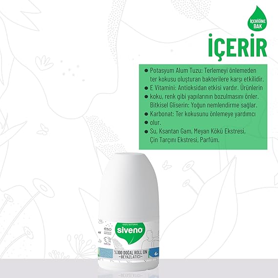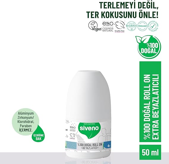 %100 Doğal Roll On Beyazlatıcı Etkili Deodorant Ter Kokusu Önleyici Bitkisel Lekesiz Vegan 50 ml