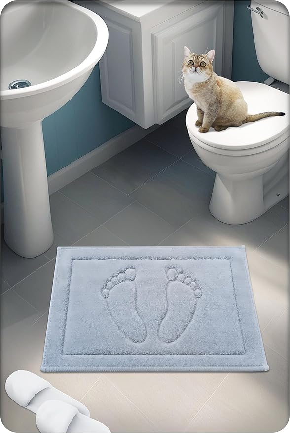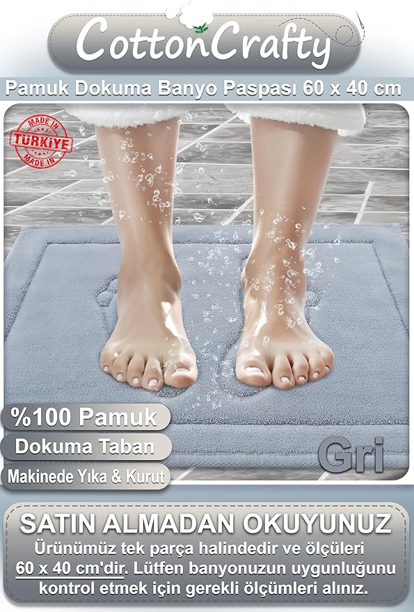 %100 Pamuk Dokuma Su Emici Banyo Paspası Ayak Desen 60×40 Cm (GRİ)
