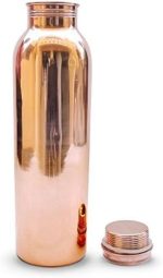 %100 saf bakır su şişesi Ayurveda su şişesi – sızdırmaz su şişesi kilit kapağı, derzsiz bakır şişe 32 ons 900 ml (Ind-5)