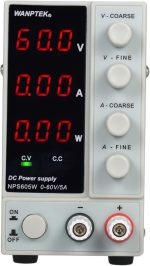 LED 3 digits display of voltage, t and power, high precision with single channel output.