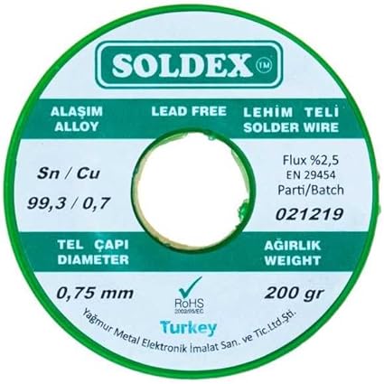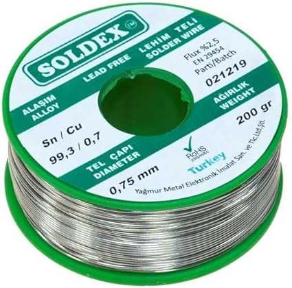 0.75 mm 200 g Kurşunsuz Lehim Teli (%99,3 Sn /%0,7 Cu)Uygunluk: 1 adet stokta