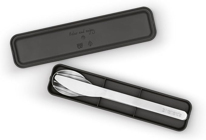Komple çatal bıçak seti – Brabantia çatal bıçak seti, temiz bir şekilde saklamak ve rahatça taşımak için plastik bir kılıfa yerleştirilmiş bıçak, çatal ve kaşıktan oluşur