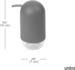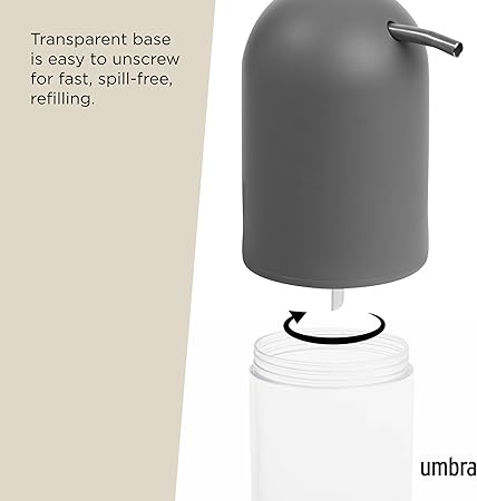 Umbra’nın dokunmatik sabun pompası. Kalıplanmış plastikten yapılmıştır. Yumuşak dokunuşlu yüzey. Kolay doldurma için geniş ağız ile tasarlanmıştır. Toronto’da tasarlanmıştır: Toronto, Kanada’da bulunan Umbra ürün tasarımında dünya lideridir ve şu anda dünya çapında 120’den fazla ülkede dağıtım yapmaktadır.