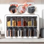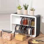 0439 9 lu Standlı Kendinden Yapışkanlı Kaşıklı Kapaklı Baharatlık Takımı – Antrasit Beyaz