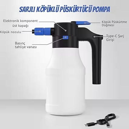 1.5Lt Yüksek Basınçlı Şarjlı Tam Otomatik Köpük Makinası Oto Yıkama Pompası Köpük Püskürtücü