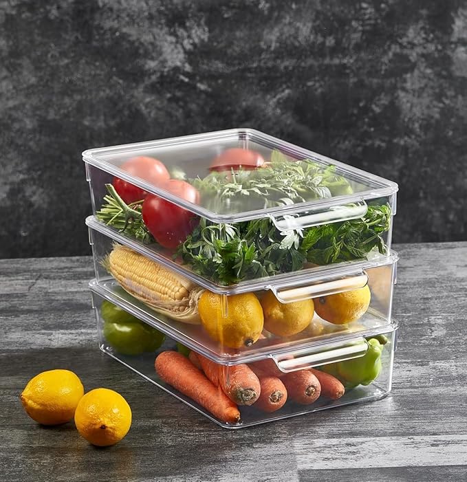 Şeffaf Görünüm: İçindeki malzemeleri kolayca görmeyi sağlar, buzdolabında düzeni artırır. Çok Amaçlı Kullanım: Buzdolabı, mutfak dolapları, kiler ve tezgah üstü için idealdir. Sebze Meyve Saklama: Özellikle sebze ve meyvelerinizi düzenli ve taze tutmak için uygundur. Kolay Temizlik: Pürüzsüz yüzeyi sayesinde kolayca silinerek temizlenebilir. Çok Yönlü Kullanım: Buzdolabı, mutfak dolabı veya tezgah üzerinde kullanım için uygundur.
