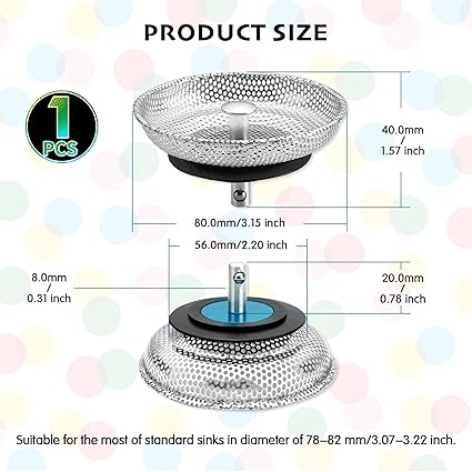 ღ【Paket içeriği】1 paket lavabo süzgeci sepeti, dış çapı 80,0 mm/3,15 inç ve kauçuk boyutu 56 mm/2,20 inç, 78 – 82 mm çapındaki çoğu standart lavabo için uygundur.