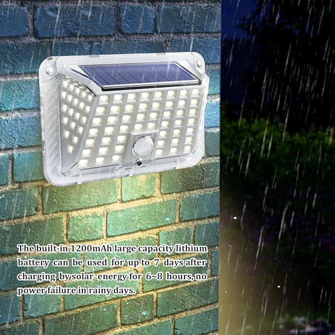 1 Adet Üç Taraflı 100 LED Solar Lamba Solar Işık Gövdesi İndüksiyon Lambası LED Lamba Solar İndüksiyon Duvar Lambası Sokak Aydınlatması Su Geçirmez Dış Aydınlatma Bahçe Peyzaj Lambası