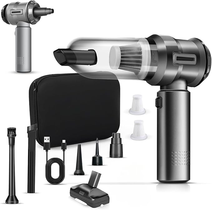 1 Arada Araç Süpürgesi – 8 Farklı Başlık – 15000Pa Ultra Güçlü Fırçasız Motor – Taşıma Çantalı – 3 Kademeli Hız Ayarı – Üfleme Çekme ve Şişirme Fonksiyonu – Ev Ofis Otomobil Şarjlı El Süpürgesi