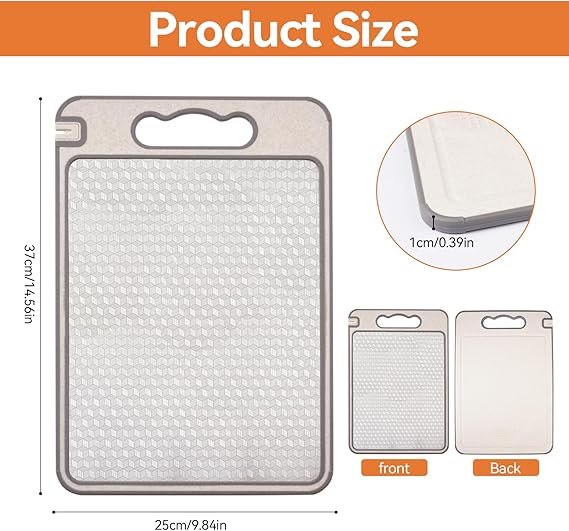 Çok amaçlı: Kesme tahtası et tarafı bileme taşı ile günlük bileme için kullanılabilir; PP yüzey sarımsak rendeleme alanı, zencefil öğütmek için de kullanılabilir. Kaymaz silikon sap kolayca asılır ve saklanır ve bakteri üremesini önler.