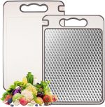 TEMİZLİĞİ KOLAY: Metal kesme tahtası pürüzsüz bir yüzeye sahiptir, sadece akan suyun altında durulayın veya yumuşak bir bezle silin. Kesme tahtasını et veya sebzeleri kestikten hemen sonra temizleyin. Bulaşık makinesinde yıkanabilir