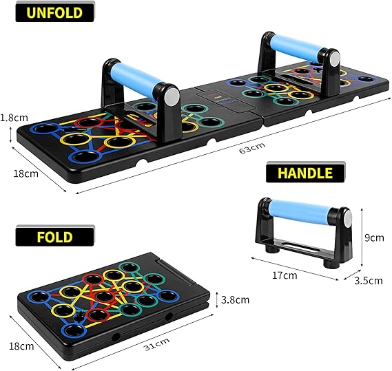 Çok fonksiyonlu ve verimli: Bu çok fonksiyonlu şınav tahtasının her iki tarafında 14 delik ve üst vücudun özel antrenman ihtiyaçlarına (omuzlar, göğüs, sırt, triseps) yağ yakmaya ve antrenman yoluyla gücü artırmaya yardımcı olan 24 kombinasyona kadar vardır