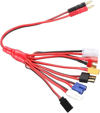1 Arada Lipo Pil Şarj Kablosu, 4mm Banana Plug – T-Dean + XT60 Plug + EC3 Plug + Futaba + JST Plug + Tamiya + TRX + IMAX B6 Şarj Cihazı için İki DIY Çıplak Tel Set Kiti Çoklu Şarj Kabloları
