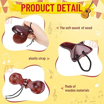 Ahşap Malzemeler: İspanyol kastanyetlerimiz, kırılmayacak veya deforme olmayacak kadar güçlü, pürüzsüz ve çapaksız masif ahşap malzemelerden yapılmıştır, ağır kullanıma dayanabilir ve size uzun süre dayanabilir