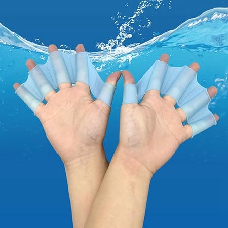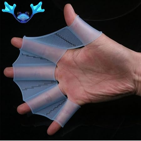 1 çift perdeli silikon yüzme eldiveni parmak yüzgeçleri su sporları yüzme el yüzgeçleri eldiven su altı dalış eğitimi el yüzgeçleri el kürek yüzme küreği S