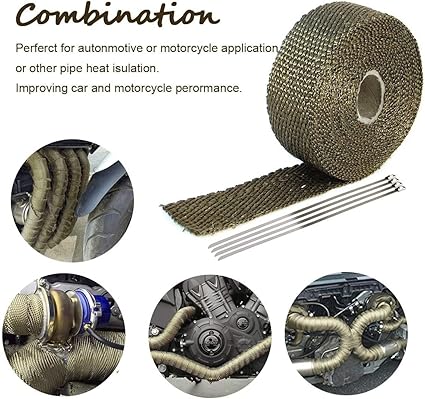 1 inç x 16 inç Titanyum Egzoz Isı Sargı Rulosu, Motosiklet için Fiberglas Isı Kalkanı Bandı 4 Paslanmaz Bağıyla