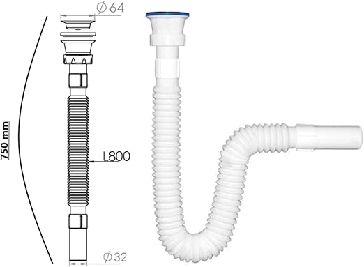 1.Kalite Paslanmaz Çelik Süzgeçli Lavabo Gider Hortumu/Körüklü Lavabo Sifonu/Eviye Gider Borusu (75 cm)