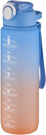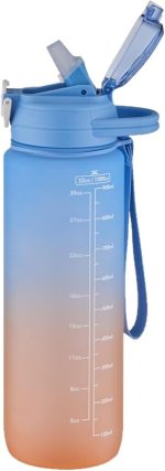 1 Lİitre Pipetli Çift Renk Motivasyon Su Matarası -Sticker Hediyeli