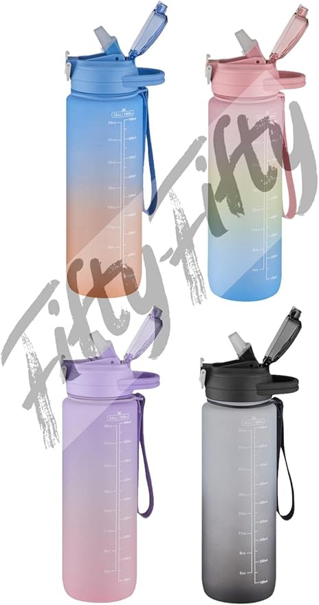 1 Lİitre Pipetli Çift Renk Motivasyon Su Matarası -Sticker Hediyeli