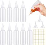 10 adet sıkma şişesi, plastik sıkma şişesi, 100 ml sıkma şişesi, küçük, hunili ve etiketli boş püskürtme şişesi, sıvılar, sos, pigmentler için