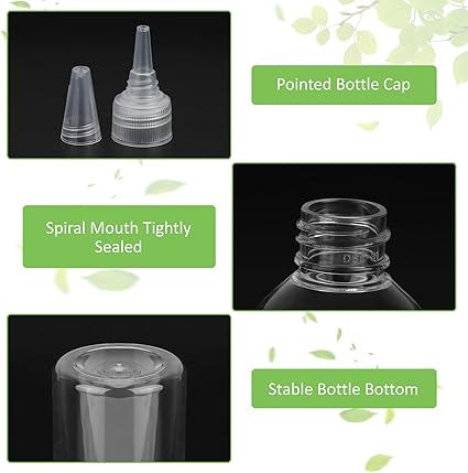 【Sızdırmaz tasarım】: Sıkma şişeleri, sızdırmaz bir sızdırmazlık sağlayan ve sıvı sızıntısını önleyen sivri kapaklar ve vidalı kapaklarla donatılmıştır. Düşük akış çıkış tasarımı sıvı akışının kolay kontrolünü sağlar. Şeffaf şişe, sıvı ve ilgili hacim kolayca ayırt edilir.