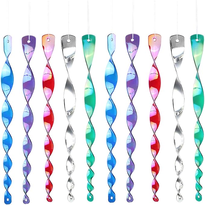 10 adet yansıtıcı kuş korkutucu, renkli, yansıtıcı, rüzgar spiralli, kuş kovucu, kuşları evinizden uzak tutmak için, balkon ve bahçe meyve ağaçlarını ve çiçekleri korumak için (kırmızı, yeşil, gümüş, mavi, lila)