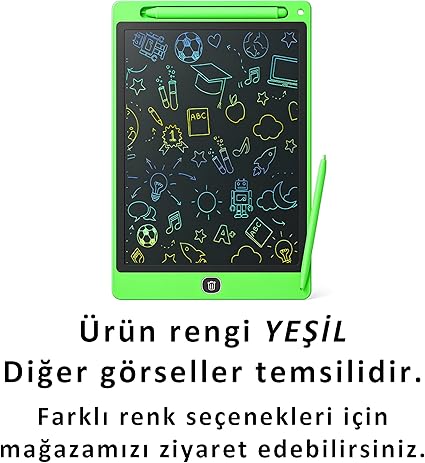 10 İnç Renkli LCD Yazı Tableti – Yeşil – Çocuklar İçin Eğitici Çizim Tableti, Kalemli Silinebilir Ekran, Kağıt Tasarruflu Taşınabilir Not Defteri (3+ Yaş)
