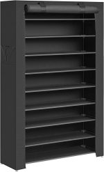 10 Katlı Ayakkabı Rafı 28x88x160 cm Ayakkabı Dolabı, Ayakkabı Depolama, Toz Geçirmez Kapaklı Ayakkabı Organizatörü, Yüksek Topuklu Spor Ayakkabı için uygun, Metal Raf, siyah, RXJ36HV1