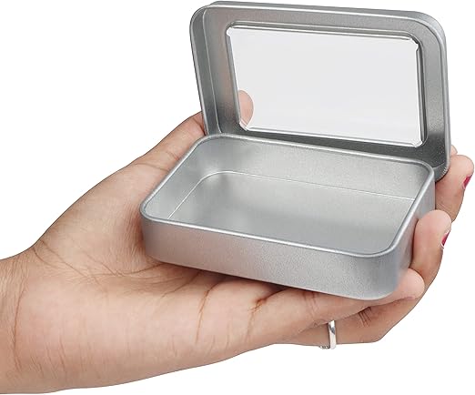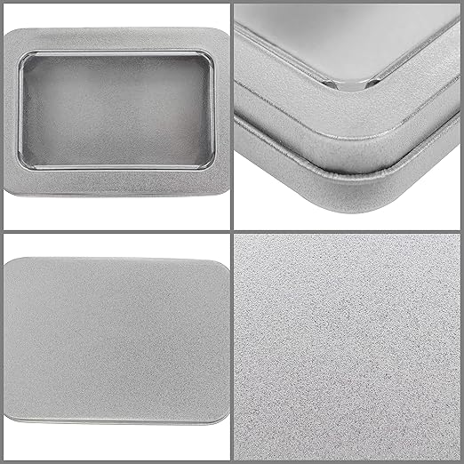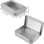 Çinko saklama kutuları: Bu pakette 10 gümüş dikdörtgen saklama kutusu mevcuttur. Kapaklı saklama kutusu dikdörtgen, düz ve yuvarlatılmış kenarlara sahiptir. Bu kaplar uzun ömürlü, paslanmaz ve sağlam demirden üretilmiştir. Her küçük kutu çıkarılabilir bir kapak içerir. Kapağın ortasında büyük, şeffaf bir plastik disk bulunur. Kutular küçüktür. Her kutu U 9 x G 6,3 x Y 1,8 cm. İç ölçüler U 8,7 x G 5,8 x Y 1,6 cm.